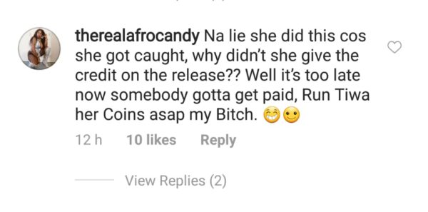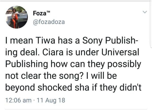 While records show that Ciara and Tekno gave Tiwa credit by including her name in the list of composers on the song, fans are still clamouring for a proper settlement to Mavin first lady for the song, as opposed to shutting down all enquiries with just a twitter shout out.