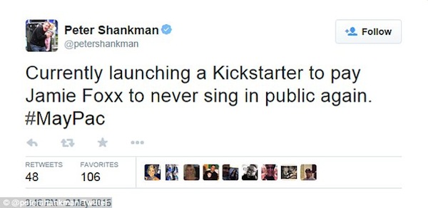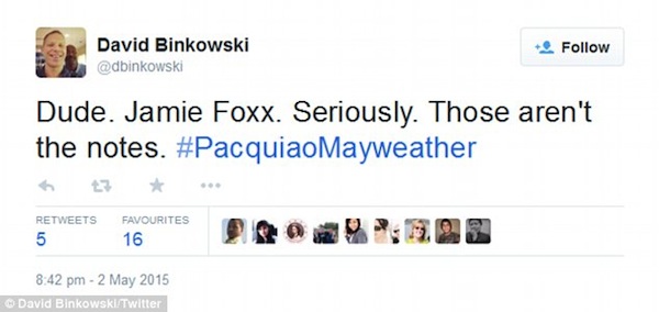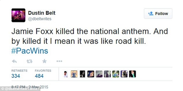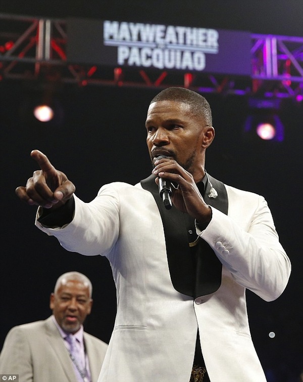 Jamie Foxx performed the US national anthem, during the so-called fight of the century between Floyd Mayweather Jr vs Manny Pacquiao but reactions to his performance are not palatable to say the least.