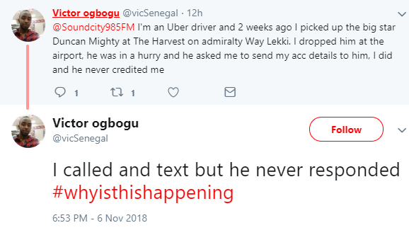 Nigerian veteran singer and man of the moment, Duncan Mighty, is in a fresh controversy after a driver named Victor Ogbogu, operating on the popular taxi-hailing platform, Uber, called him out for not paying his fare, weeks after he dropped him at the airport.