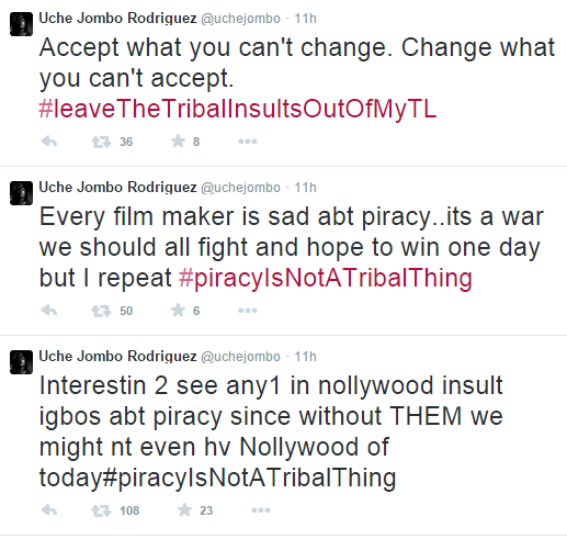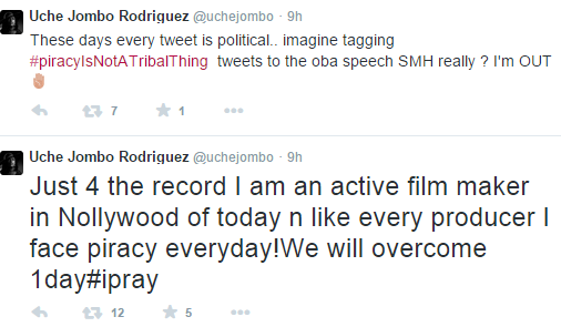 In her response, Uche, also a producer, said the issue of piracy is bad and affects all filmmakers but shouldn’t be mixed with tribalism.