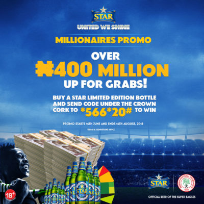 Premium lager beer brand Star, has commenced a consumerpromotion that would be running pan Nigeria titled ‘United We Shine Millionaires Promo’, to reward beer lovers of Nigeria’s premium beer brand with over 400 million naira.