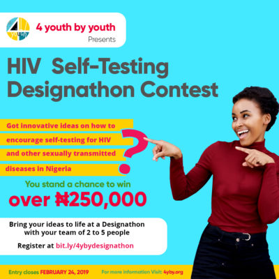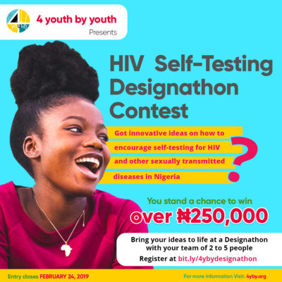With only about a quarter of young Nigerians that know their status, HIV testing among young people is often undermined by lack of confidentiality, stigma, discrimination, fear, and low perceptions of risk. However, self-testing is a new strategy with the potential to overcome these challenges. It allows an individual to collect his or her own sample, perform the test, and interpret the result either in private or with someone they trust. The Designathon will be a platform where eager, innovative and creative young Nigerians can bring about solutions that will promote HIV self-testing among youths. For more information, visit 4yby.org.