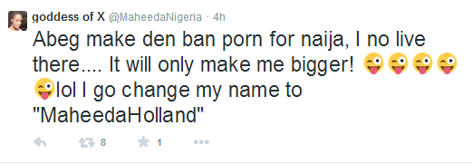 According to the young woman whose real name is Caroline Sam, she is only a ‘nudist’ but made it clear all the same that she won’t be overly concerned if porn sites are blocked in Nigeria since she doesn’t reside here for now.