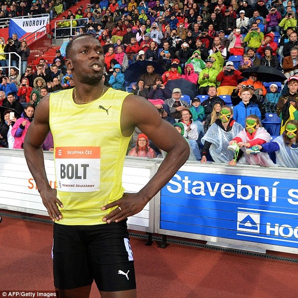 Speaking after the victory, the world’s fastest man said: ‘I’m always happy to be in Ostrava. It’s one of my favourite places to run. It always rains. It was (difficult) as it was a little bit colder than I thought it would be.’