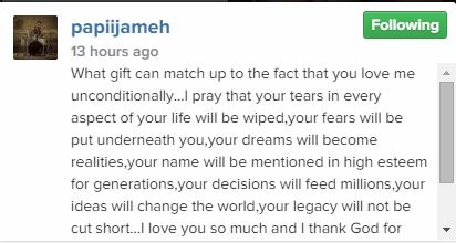Joseph, popularly known as Papii J who is in charge of drums in P-Square‘s band, posted this lovely picture of himself and Kaffy with a heart-melting caption: ‘What gift can match up to the fact that you love me unconditionally…I pray that your tears in every aspect of your life will be wiped,your fears will be put underneath you,your dreams will become realities…’