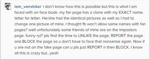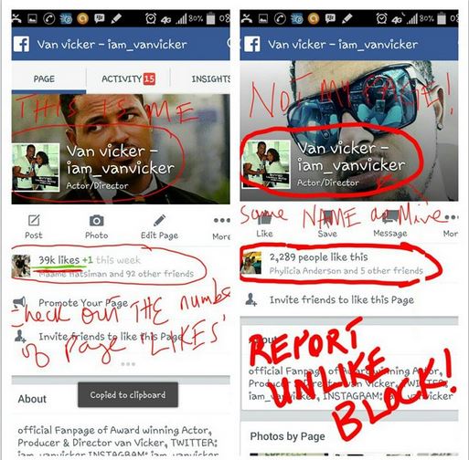 The actor posted a screen shot of his page and the clone on Instagram recently with the caption: ‘I don’t know how this is possible but this is what I am faced with on face book. my fan page has a clone with my EXACT name. letter for letter. He/she had the identical pictures as well so I had to change one picture of mine. I thought fb won’t allow same names with fan pages?…’