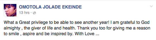 Celebrated Nollywood actress, Omotola Jolade-Ekeinde has another reason to celebrate today, February 7, 2015 as the mother of 4 turns 37.