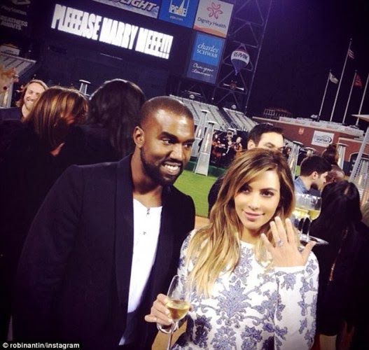 In this video, Kanye West is seen proposing to his baby mama Kim Kardashian in the middle of the AT and T Park in San Francisco, California.