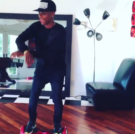 Barely 24 hours after Chris Brown shared a video of himself on the new trending ‘iohawk‘ skateboard, Wizkid has done the same.