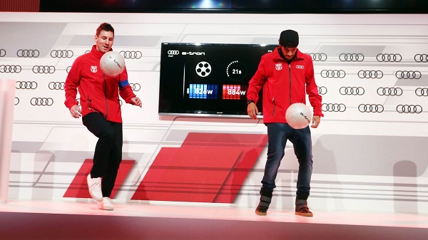Barcelona stars, Lionel Messi and Neymar Jr came up against each other in a Keepy-Uppy challenge in an event for Barcelona sponsors, Audi recently.