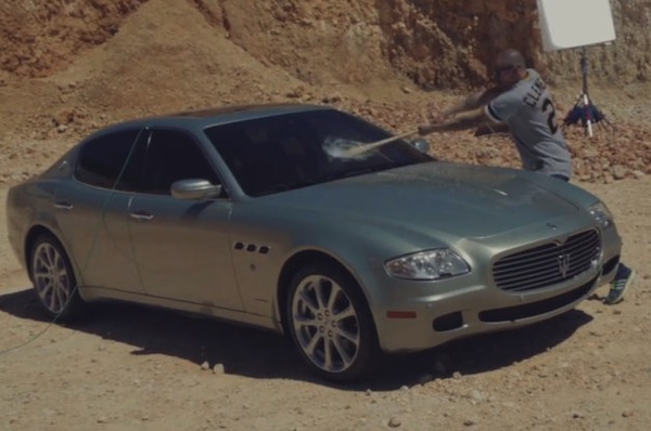 This music video titled ‘Adentro’ by Puerto Rican group, CALLE 13, sees René, the group’s frontman destroy his luxury 2014 ‘Maserati Quattroporte Sedan’ with a baseball bat before letting it fall off a cliff.