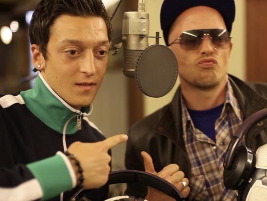 Who ever knew German footballer Mesut Özil could also kick bars? The Arsenal player got in the studio with German singer Jan Delay to record a new song.