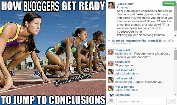 Although Juliet is clearly angry, she nonetheless had time to insert a hilarious picture in her post and with her reference to bloggers, many feel her anger is directed at Linda Ikeji.