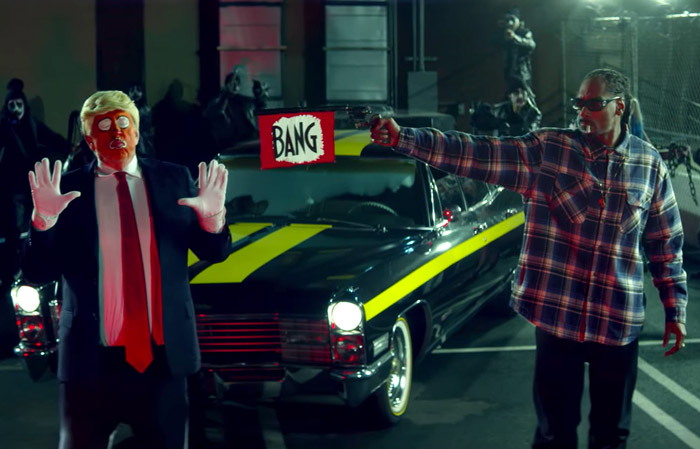 Snoop says that he made this visual statement in response to many different things, including, ‘the ban that this motherfucker tried to put up; him winning the presidency; police being able to kill motherfuckers and get away with it,’ and ‘people being in jail for weed for 20, 30 years and motherfuckers that’s not black on the streets making money off of it.’