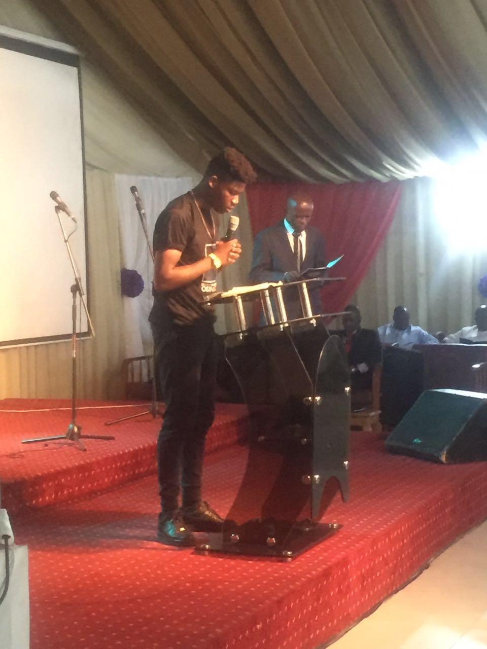 Female rapper, Sasha P listens on as the pastor delivers his sermon