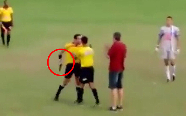 The referee identified as Gabriel Murta felt assaulted by the player who was protesting his red card and simply dashed into the dressing room and returned with a handgun which he waved around. He was however held back by one of the linesmen who was courageous enough to move close to the enraged referee.