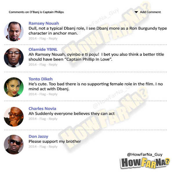 And here’s the interesting part: each of the ‘movie posters’ are followed by a set of social media comments made by popular names in the entertainment industry (and that includes myself and Chairman of NET’s editorial board Chris Ihidero).