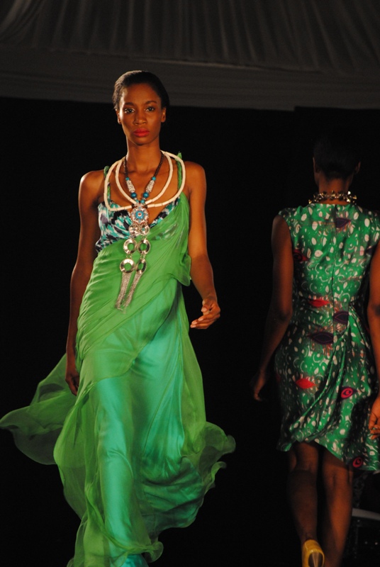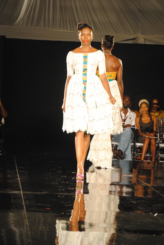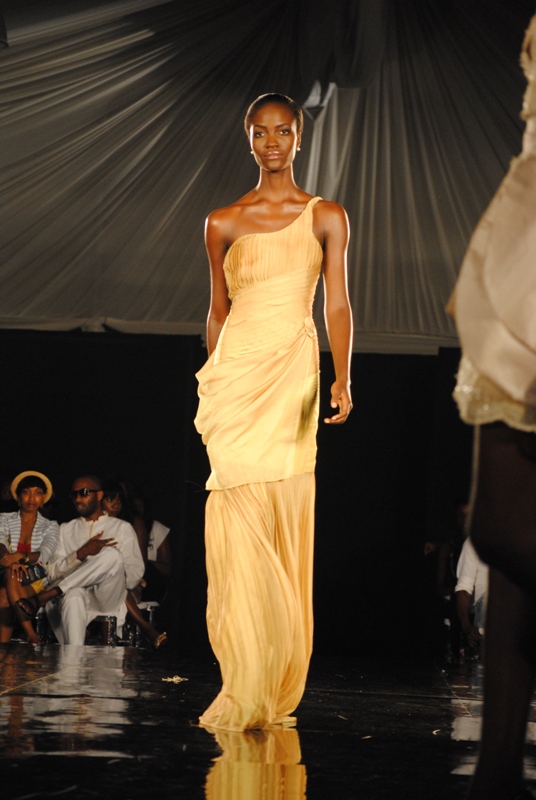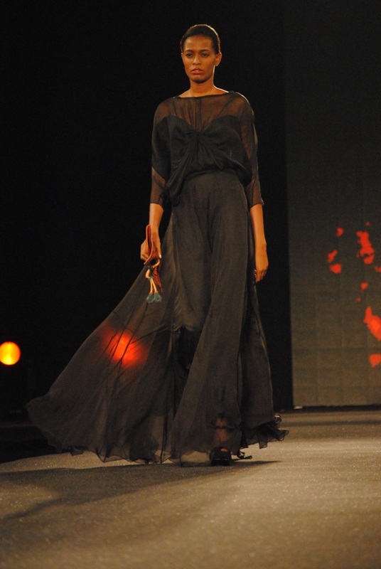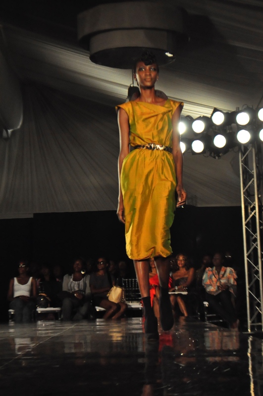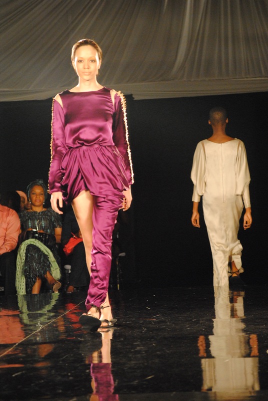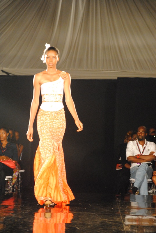 The show finally began on Friday, March 11, 2011 with a beautiful display of creative collections from House of Nwocha. Nwocha’s use of African fabrics with a fusion of satin, mercury and silk was a lovely sight to behold as the models strutted the runway elegantly in the collection. It was indeed a lovely way to open the show!