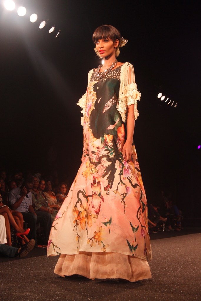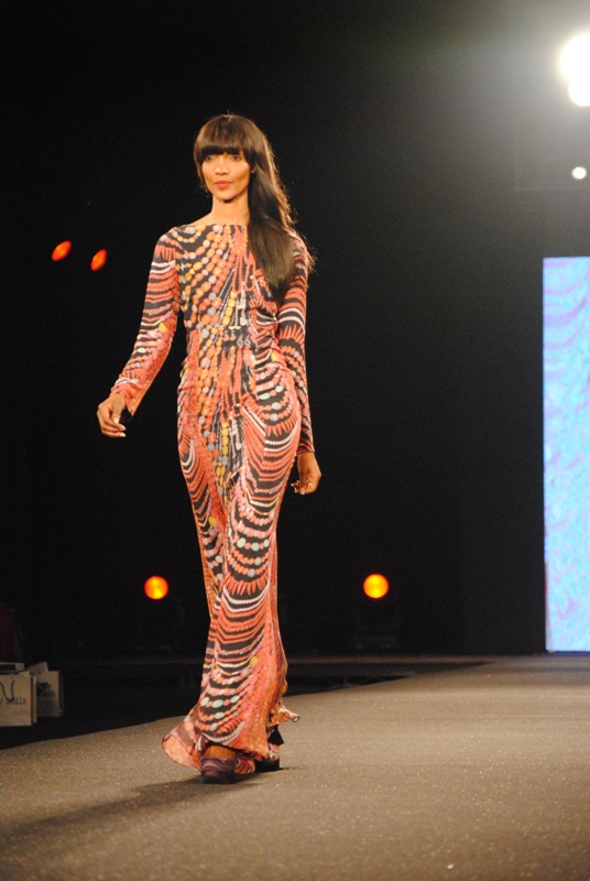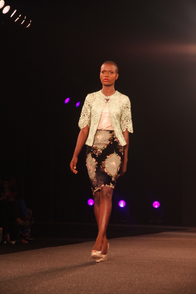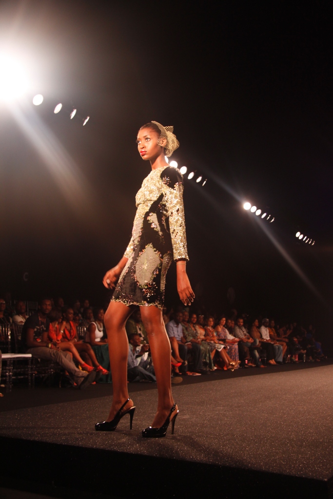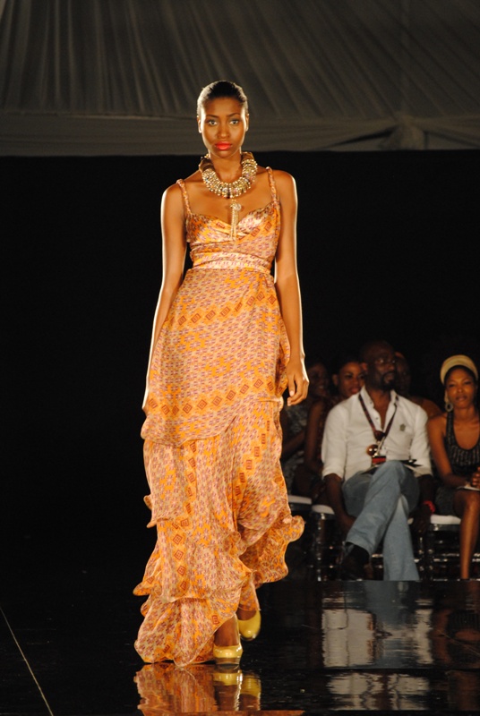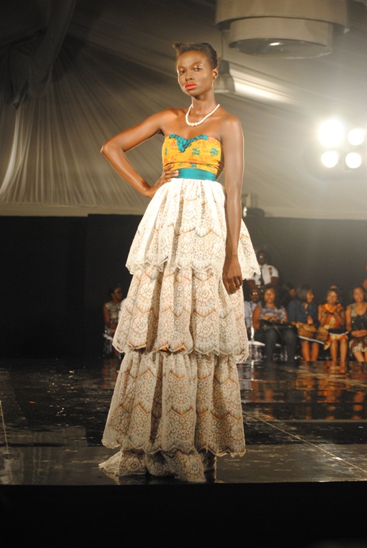 The show finally began on Friday, March 11, 2011 with a beautiful display of creative collections from House of Nwocha. Nwocha’s use of African fabrics with a fusion of satin, mercury and silk was a lovely sight to behold as the models strutted the runway elegantly in the collection. It was indeed a lovely way to open the show!