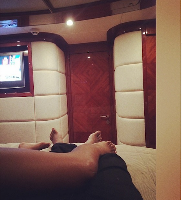 That’s what his fans are asking after the music producer posted this intimate photo of a woman’s legs wrapped around his while on a boat cruise in Dubai. The photo is believed to have been taken in one of the rooms on deck.