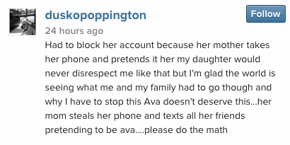 Ava took to her own Instagram to upload the screen grab of denial to her father’s page. And she captioned it: