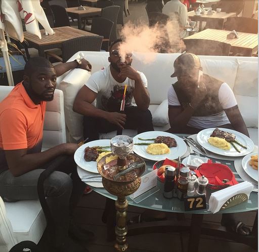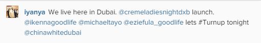 Iyanya posted this picture on social media today with the caption: ‘We live here in Dubai. @cremeladiesnightdxb launch. @ikennagoodlife @michaeltayo @eziefula_goodlife lets #Turnup tonight @chinawhitedubai.’