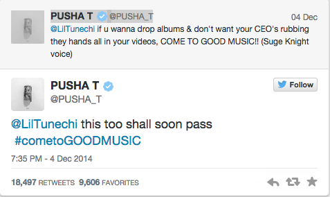 Pusha T saw Weezy’s tweets and told him to jump ship and join G.O.O.D. Music.