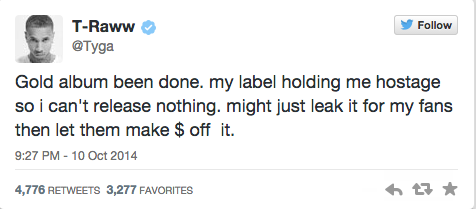 This is the latest episode in an ongoing feud between YMCMB and its artists. In October, Tyga complained that Young Money wouldn’t release his album and that he wanted to go independent.