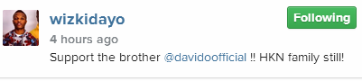 Produced by Shizzi, the video for the song has already been shot in Dubai by Sesan Ogunro and in a show of new-found love, Starboy boss, Wizkid tweeted at his fans to show love and support for Davido as he shared the artwork of the forthcoming song with the caption: ‘Support the brother Davido. HKN family still.’