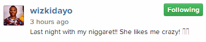Wizkid captioned the picture: ‘Last night with my niggaret!! She likes me crazy’.