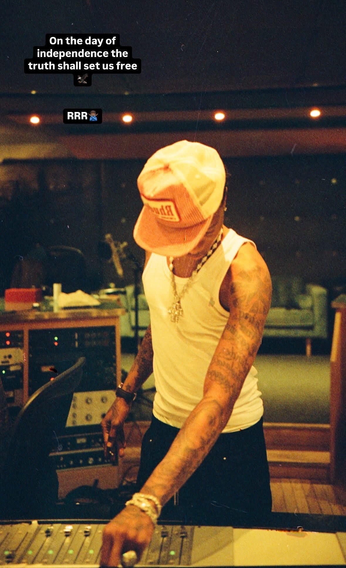 In a post on his story, he captioned a photo where he was in the studio with “On the day of independence the truth shall set us free”, adding the now-viral “RRR” quote under it.
