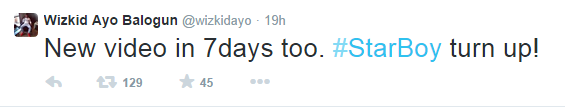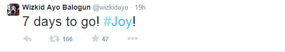 The singer made this known when he tweeted some hours ago ‘7 days to go #Joy’. He also tweeted that he will be dropping a new video on the same day: ‘New video in 7days too. #StarBoy turn up,’ he wrote.