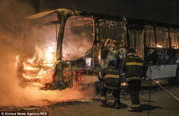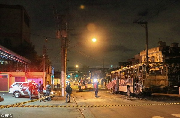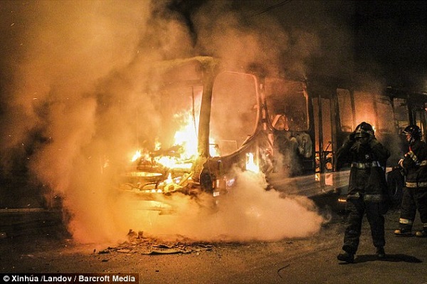 Unhappy Brazilian fans took to the streets of Sao Paulo and set a bus ablaze following their country’s defeat in the World Cup Semi Finals.