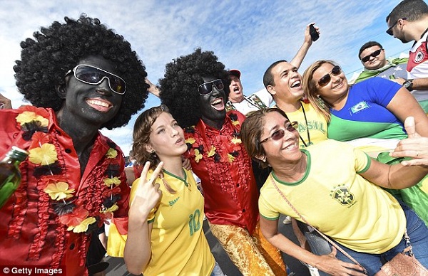 The photo, which went viral on social media networks, was of two German fans that painted their faces black and wore black wigs and sunglasses to the match on Saturday, June 21, 2014.