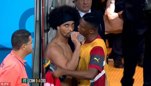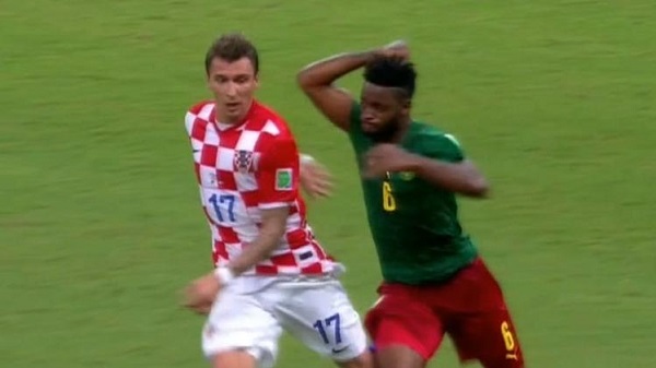 Before that incident, Cameroon midfielder Alex Song was shown a red card after he elbowed Croatian striker Mario Mandzukic in the first half of the game.