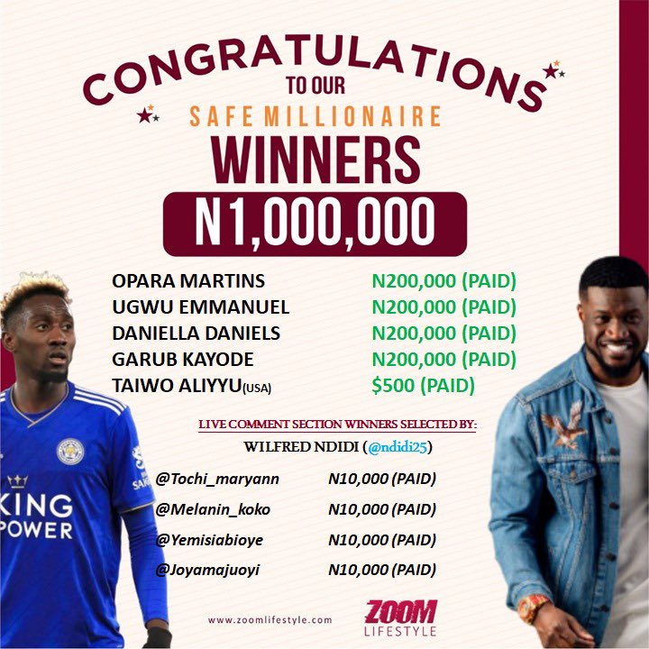 Tomorrow is another Zoom Live Draw Of N1Million for 5 people!