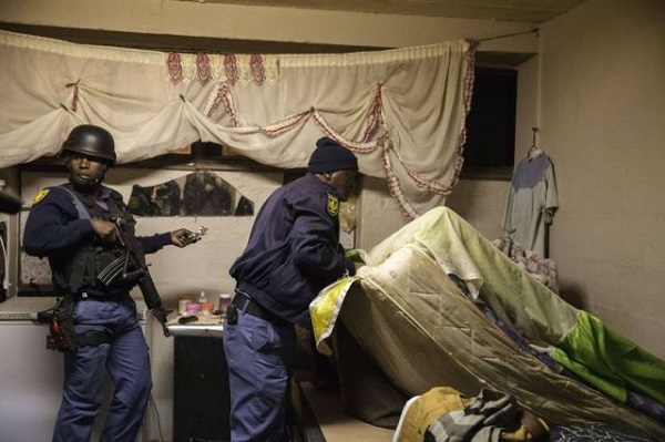 Determined to put an end to xenophobic attacks on immigrants, South African security operatives, on Thursday, April 23, 201 raided Madoda Hostel in Alexandra, Johannesburg in search of drugs and weapons.