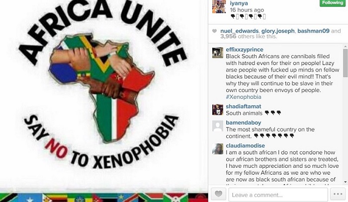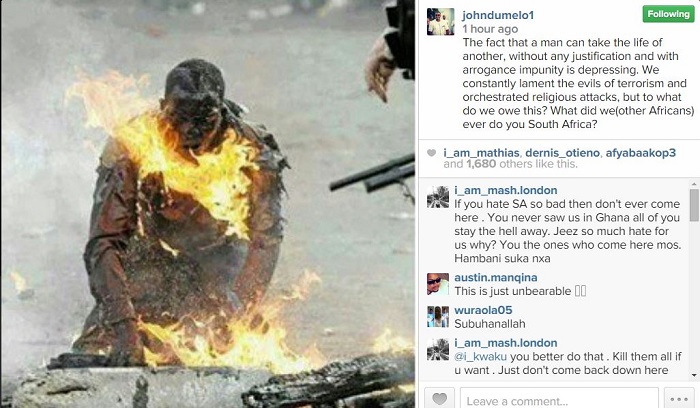 The latest set of celebs to raise their voices against the barbaric acts by South Africans include Iyanya, John Dumelo, Victoria Kimani and comedian, Gbenga Adeyinka, who have all taken to social media to condemn the attacks while pleading for unity and peace.