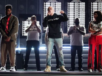 As his performance of his Grammy-nominated single “1-800-273-8255,” a song on suicide prevention, featuring singers Alessia Cara and Khalid, came to a close, the rapper spoke about a variety of topics including suicide prevention, #MeToo; Hollywood’s Time’s Up initiative.