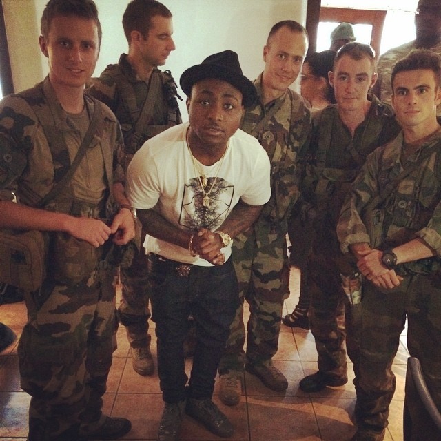 Davido who is currently in Ivory Coast, Abidjan for a tour shared a picture of himself upon arrival. Barely hours later he shares another picture where he’s surrounded by soldiers and captioned it ‘Protected!! 0 EBOLA!!’.