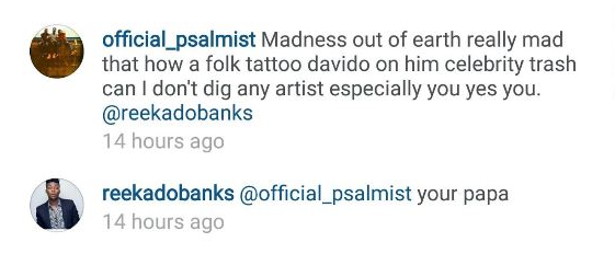 Well, another fan was not so excited, and called out Reekado; and the following conversation ensued.