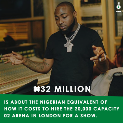 Davido is set to become the second Nigerian-based pop star to sell out the venue and the financial demand of the 02 Arena is no joke. It costs around 80,000 euros to book the venue for 24 hours which is a whopping sum of 32 million in naira.