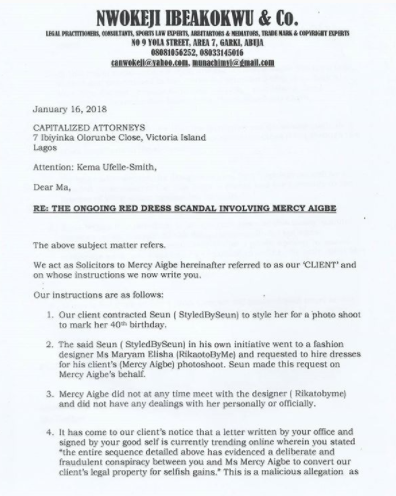 However, in a swift response through her attorney, Mercy has demanded a public apology from Mrs Sawyer within 7days or she’ll also seek redress in a law court and further sue her and the designer for false accusation and trying to defame her person.